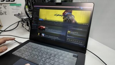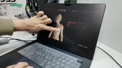 挑戦者は、ファンレスの薄型ノート「M2 MacBook Air」。 対する王者は、AAA級ヘビー級タイトル「サイバーパンク2077」。