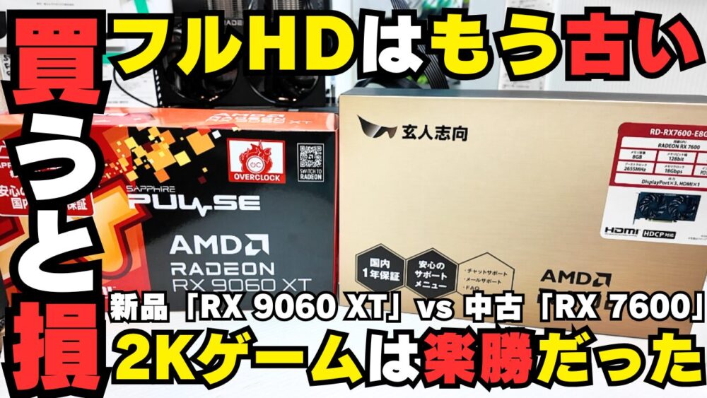 この記事は、僕のYouTubeチャンネル「べんじゃみんLAB」で公開した、最新エントリーグラボ**「Radeon RX 9060 XT」(新品 ¥39,800)と、旧世代エントリー「Radeon RX 7600」(中古 ¥22,000)の2Kゲーミング性能比較**の完全解説版です。