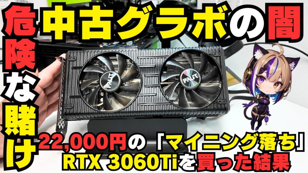 私が思うに、中古市場に出回っている**RTX 30系(NVIDIA)やRadeon 6000番台(AMD)**は、「マイニング落ち」と書かれていなくても、その大半がマイニングに使われていたと疑うべきです。