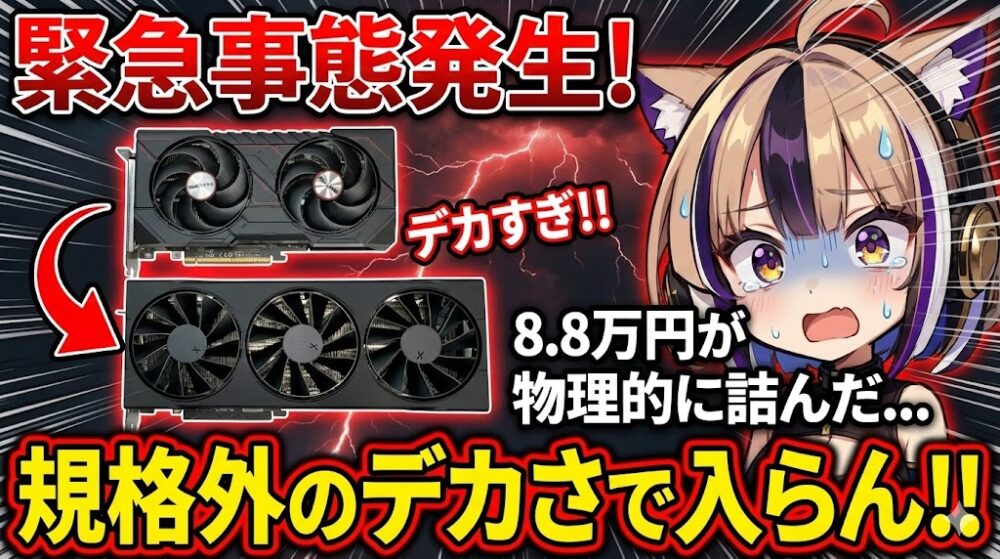 「どうしたいわけ?」 正直、思いました。技術の進歩で性能が上がるのはいいですが、ここまで巨大化させる必要はあるのでしょうか。 ヒートシンクをもっと効率化して、ファンを工夫して、もう少しコンパクトにできないものか。 これ、マザーボードに挿したら、重力でPCIeスロットがもげる未来しか見えません。