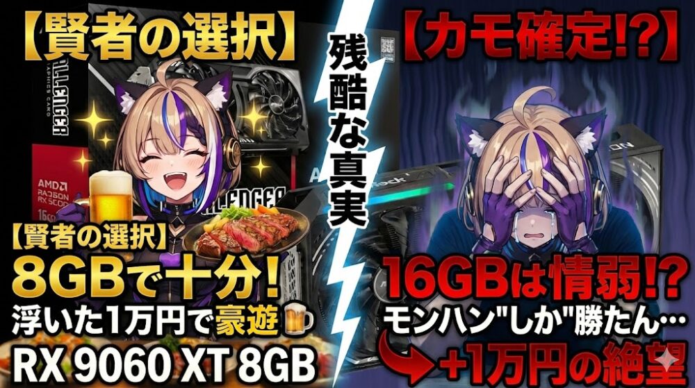 いかがでしたでしょうか。 今回は「RX 9060 XT」の8GB版と16GB版、1万円の価格差について、ベンチマークと私の独断と偏見で検証してみました。