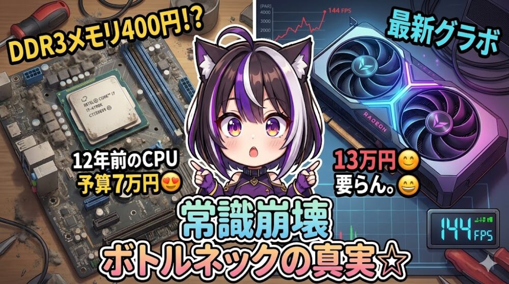 主役は、12年前に発売された伝説の名機**「Intel Core i7-4790K」。 そして相棒は、今あえて狙い目の不人気グラボ「Radeon RX 9060 XT 8GB」**です。
