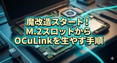 この記事では、今回の魔改造の一部始終をお届けするとともに、「OCuLinkとは何か?」「なぜ私の環境では激重になってしまったのか?」というeGPU構築における罠と失敗の原因を、初心者の方にもわかりやすく徹底解説していきます。