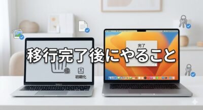 Mac移行アシスタントは、本当に便利な機能です。面倒な設定やデータの手動コピーなしに、古いMacの環境をそっくりそのまま新しいMacへ持っていけます。